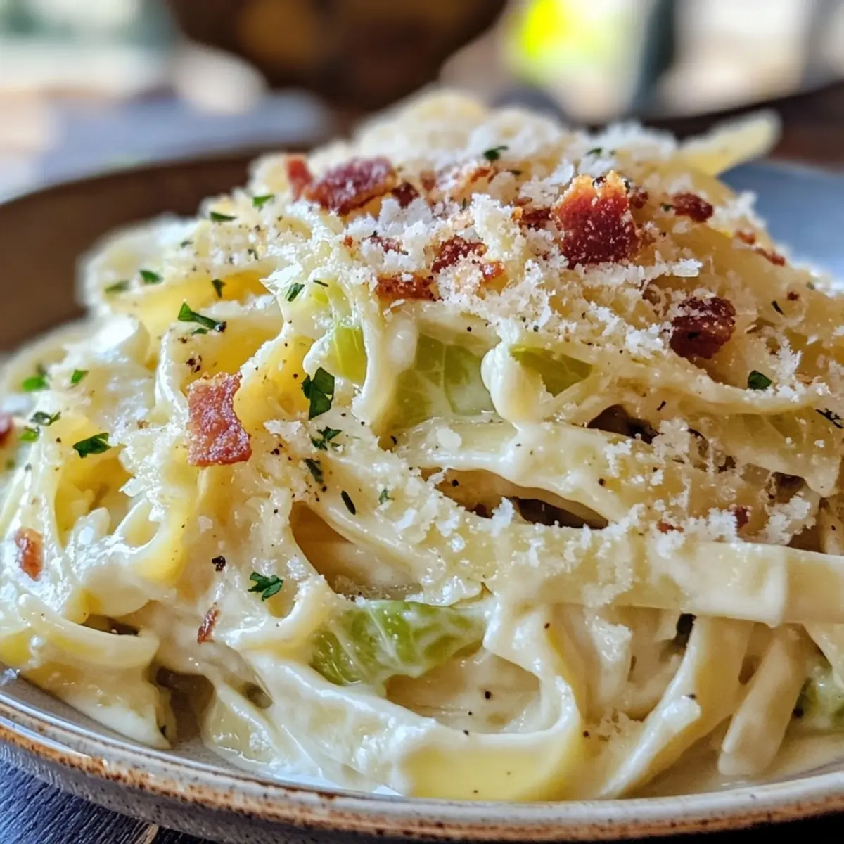 • Customize Your Dish: Feel free to add vegetables like spinach or peas for extra nutrition and color in your cabbage Alfredo with crispy pancetta.