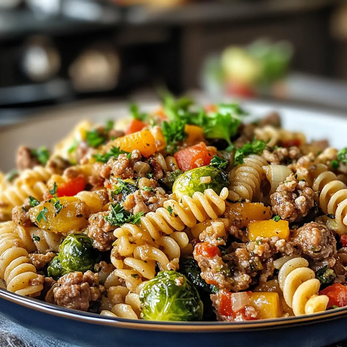 This dish beautifully weaves together the heartiness of savory Italian sausage with tender pasta, complemented by the sweetness of butternut squash and the slight bitterness of Brussels sprouts. Whether you’re entertaining family or simply treating yourself after a long week, this recipe is incredibly easy to make and endlessly customizable. You can swap out the sausage for chicken or turkey or even make it vegetarian with lentils or chickpeas—whatever keeps your heart happy and your taste buds dancing. Join me in creating a beautiful autumn meal that celebrates the season with every bite!
