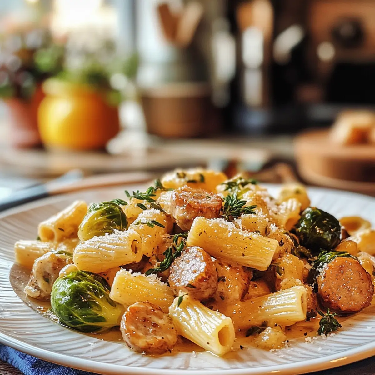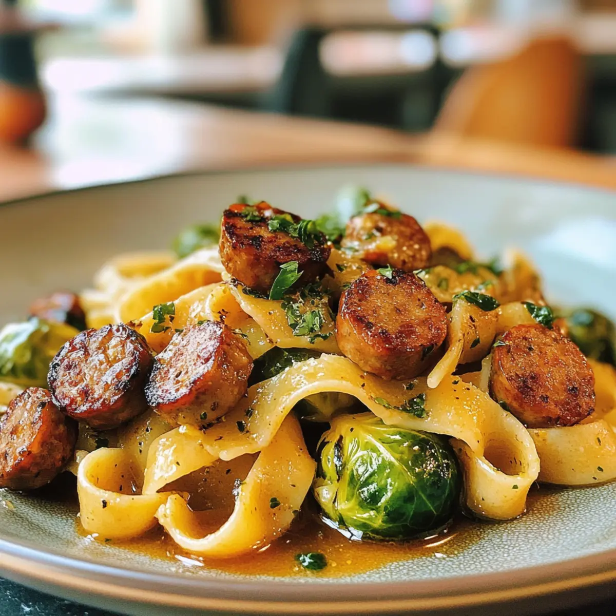 • Discover the essentials for your Cozy Ultimate Autumn Dinner: Sausage, Pasta, Brussels Sprouts Delight.