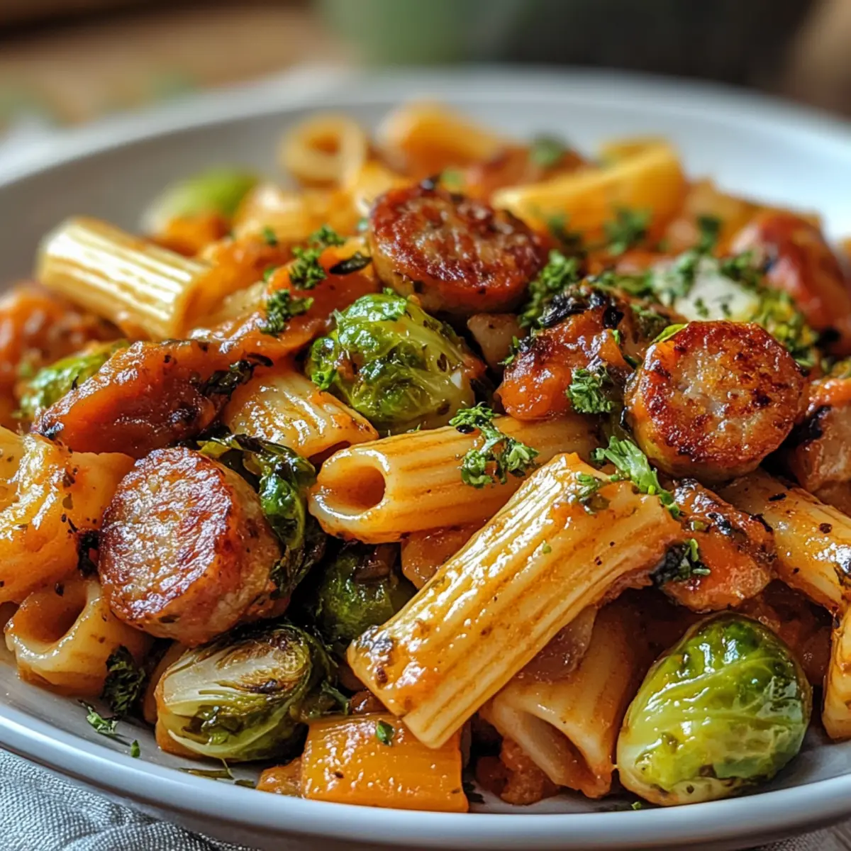 Comforting and filling, this dish wraps you in warmth, making it perfect for chilly nights. Flavor-packed with savory Italian sausage, sweet butternut squash, and earthy Brussels sprouts, every bite is a seasonal celebration. Versatile enough for any dietary need, you can swap in chicken sausage or go vegetarian with chickpeas. Quick & easy, it comes together in under an hour, making weeknight dinners a breeze. Crowd-pleaser guaranteed—serve it up for gatherings and watch the compliments roll in. If you’re looking for more comforting options, check out Cozy Autumn Sprouts for the ultimate fall flavors!