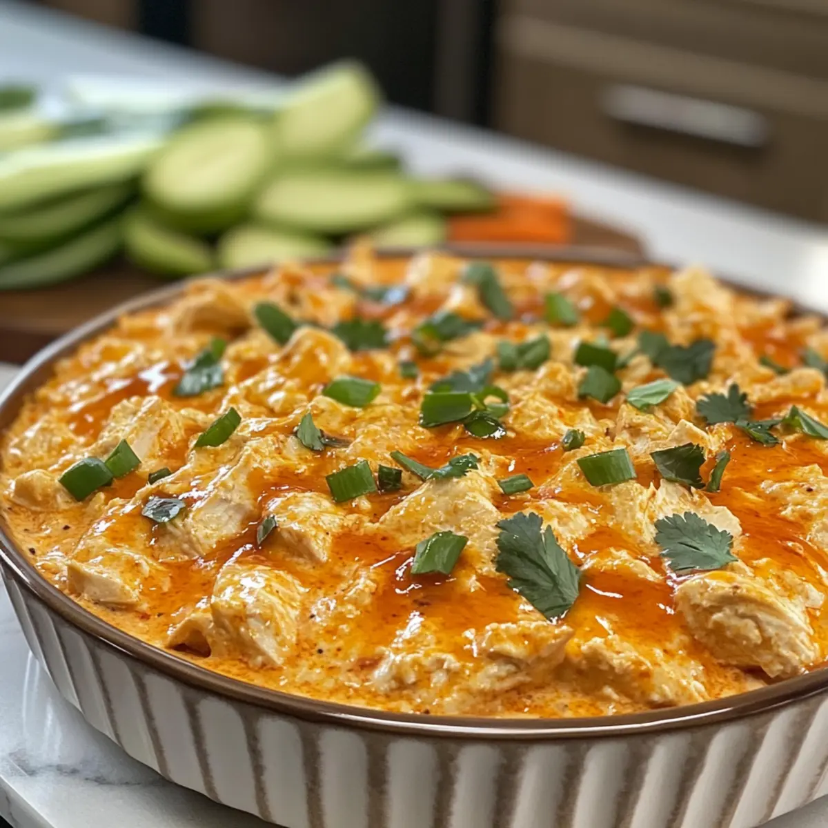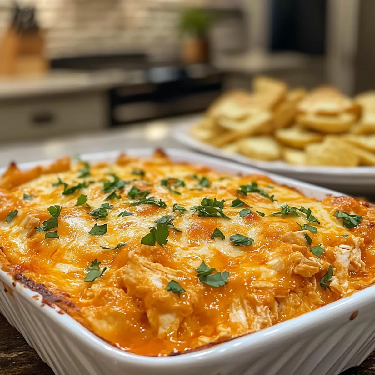 Picture this: tender chicken enveloped in a velvety blend of cream cheese and zesty buffalo sauce, topped with melty cheddar that pulls away in gooey strands. It’s the perfect accompaniment for crispy tortilla chips or fresh veggie sticks. Whether you’re hosting friends for a big game or just indulging at home, this dip is customizable to suit everyone’s taste. Say goodbye to bland snacks, and let’s dive into this flavorful adventure that will make you the star of any gathering!