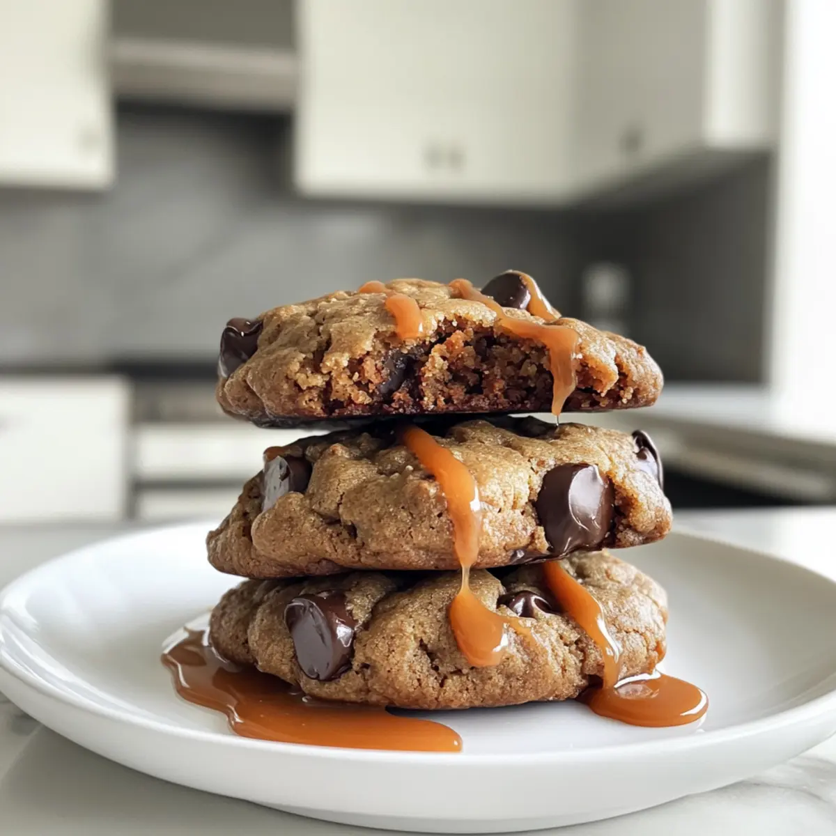 A light drizzle of salted caramel adds a decadent touch, enhancing the depth of flavor in each bite, without overpowering the cookie’s essence. -