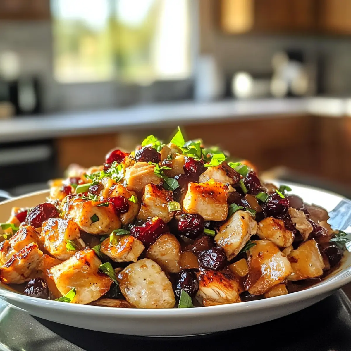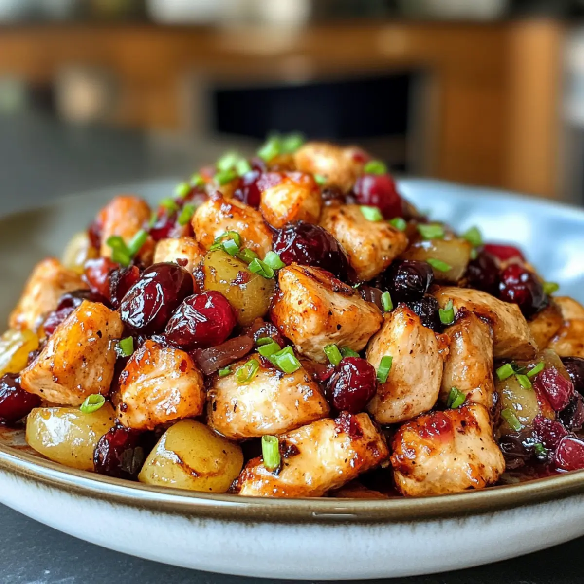 Combine Ingredients: Chop the cooked chicken into bite-sized pieces, return it to the skillet, and add the fresh cranberries. Mix everything together gently to ensure the flavors intertwine beautifully.