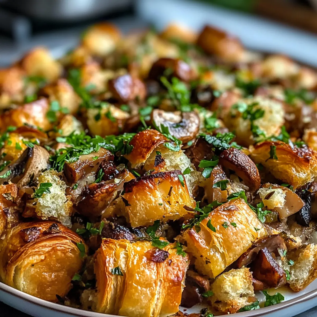 Irresistible Savory Herby Mushroom Croissant Stuffing Recipe Delight