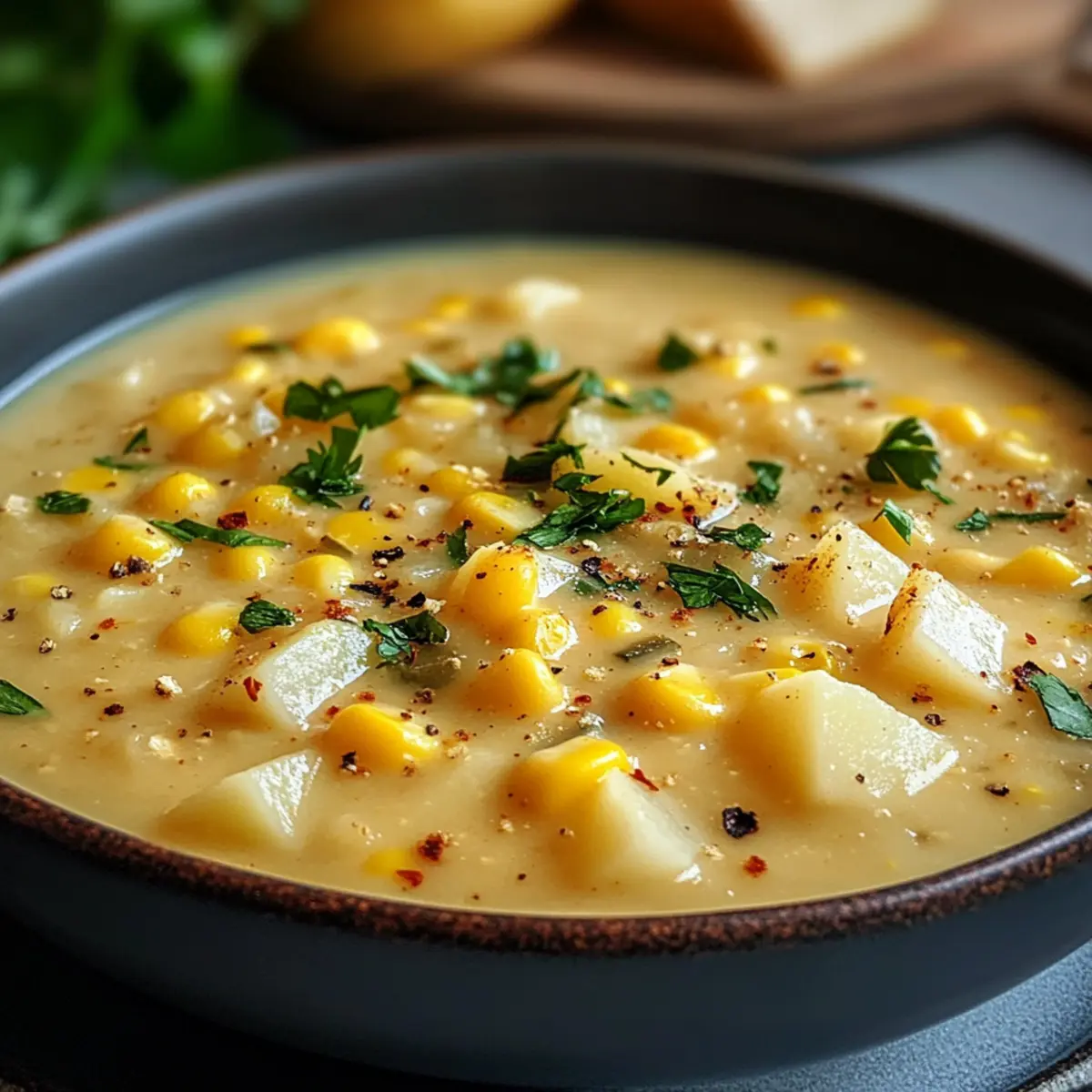 Irresistible Smoky Creamy Vegan Corn Chowder with Potatoes Bliss