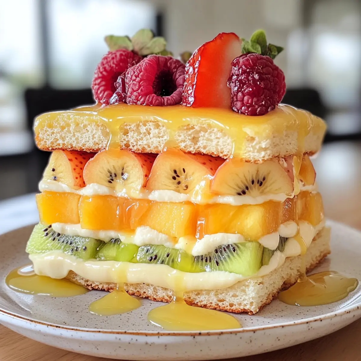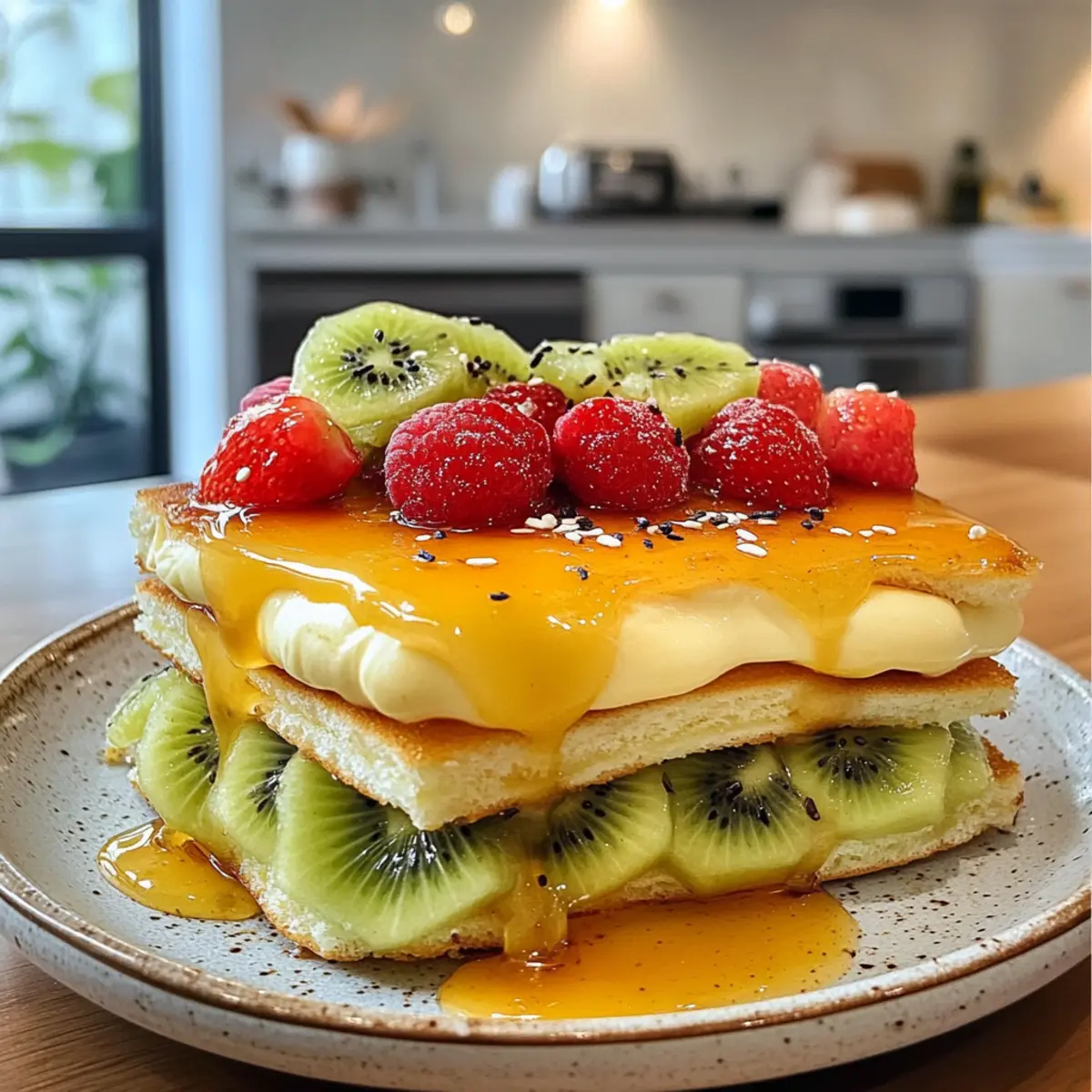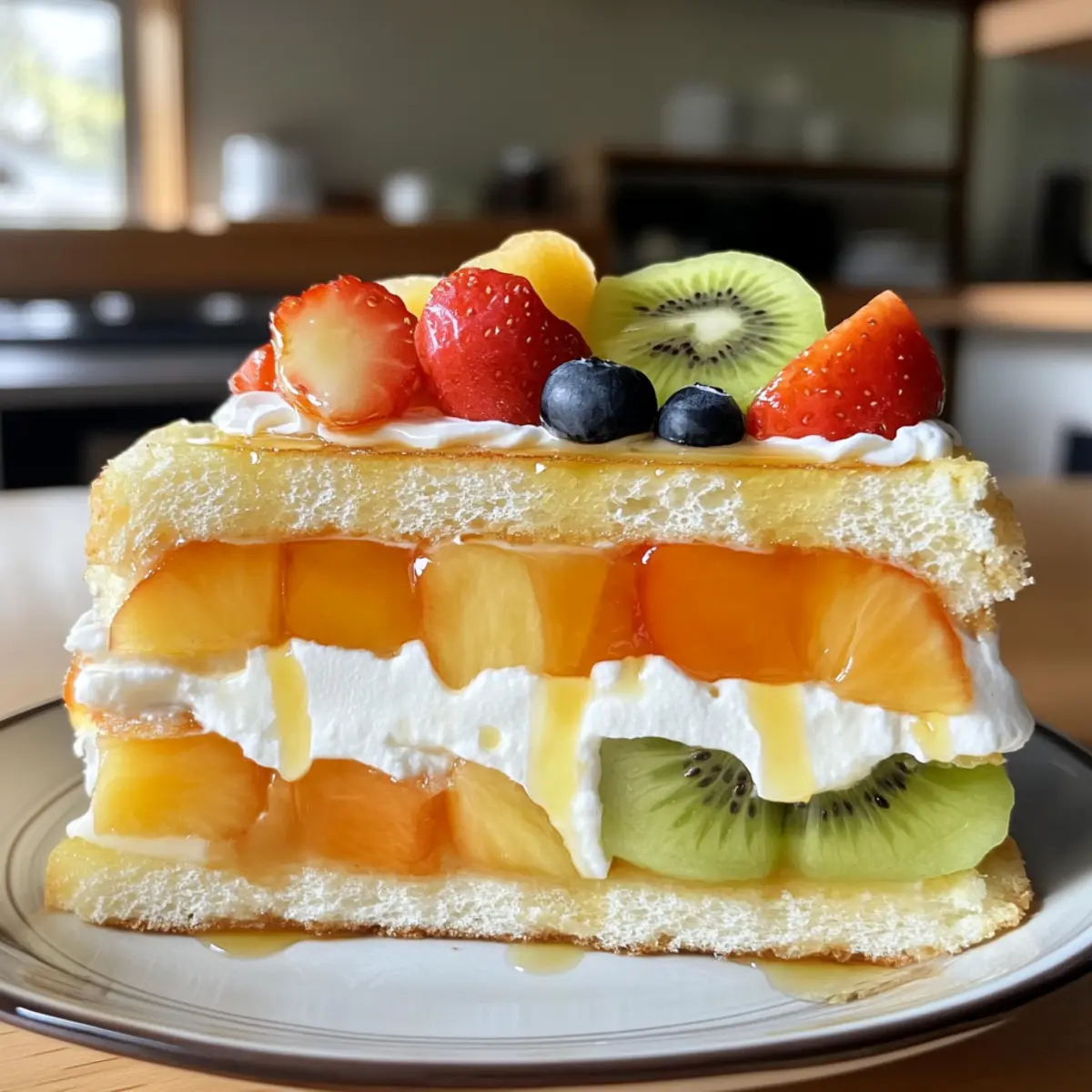 - Assemble the Sandwich: Spread whipped cream on each slice of bread, layer with sliced fruits, and top with another slice.
