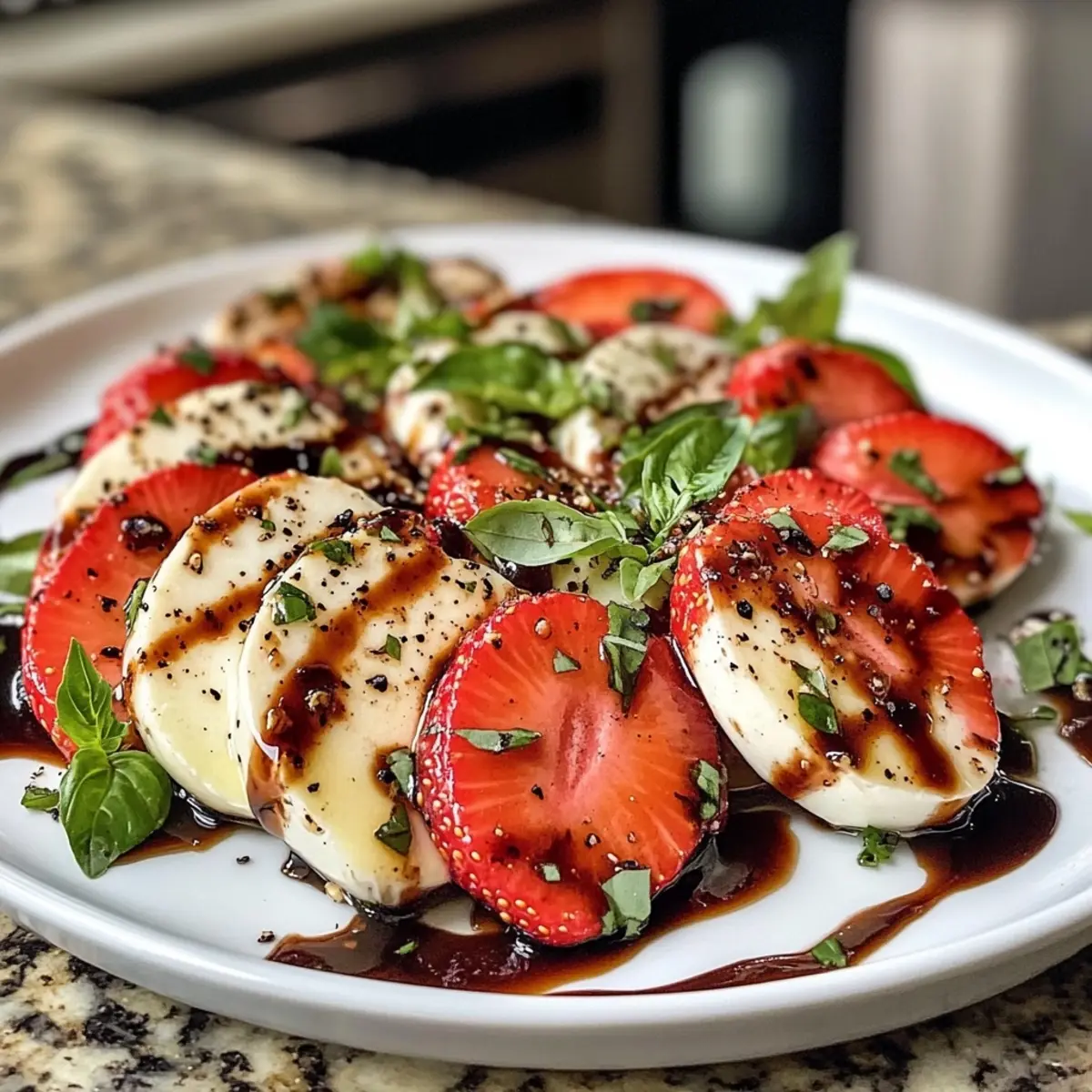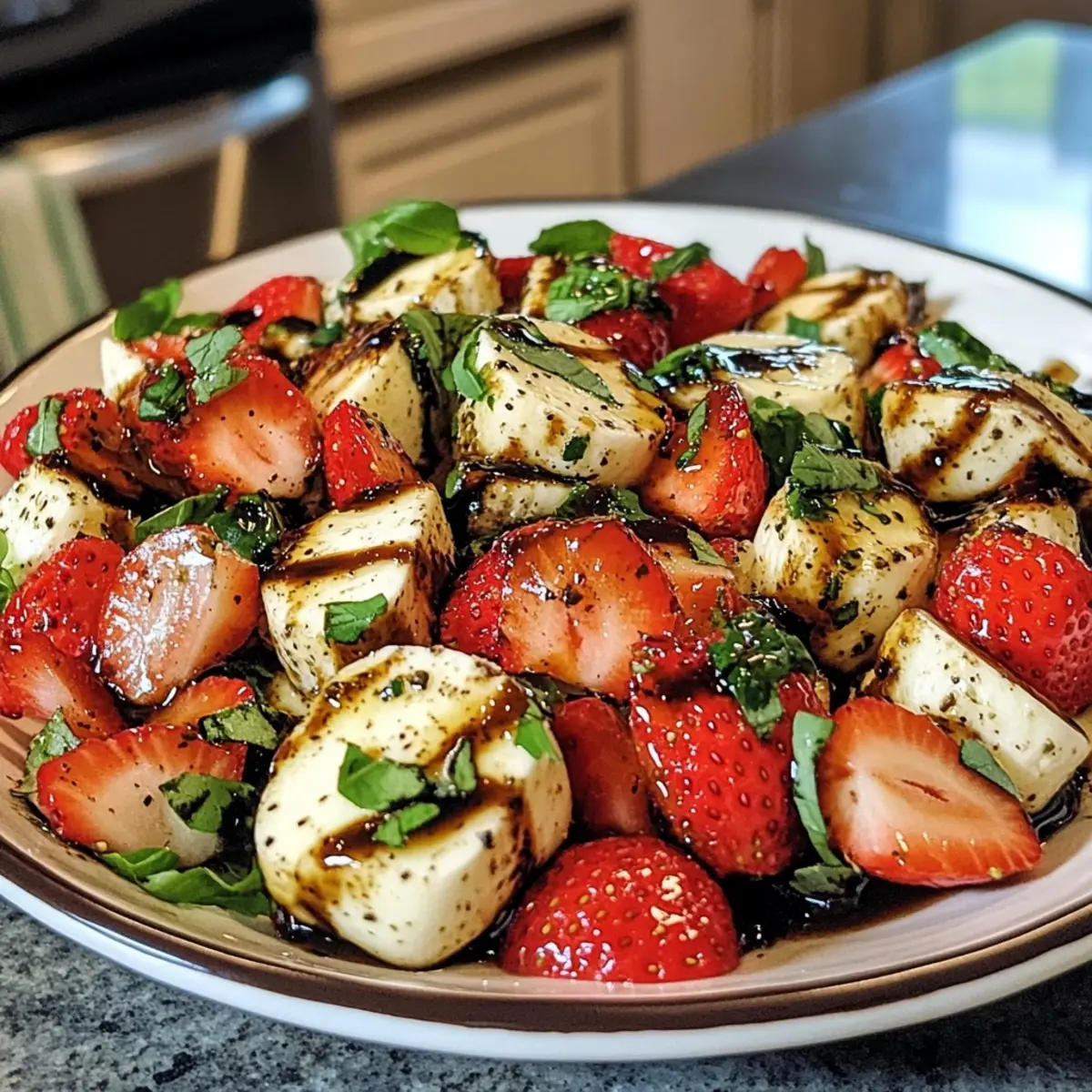Imagine a sun-drenched afternoon, the air heavy with the sweet scent of summer. As I stood in my kitchen, the vibrant colors of fresh strawberries caught my eye, sparking my creativity. This Juicy Balsamic Strawberry Caprese Salad was born from that moment of inspiration, bringing together lush strawberries, creamy mozzarella pearls, and aromatic basil in a delightful dance of flavors.
