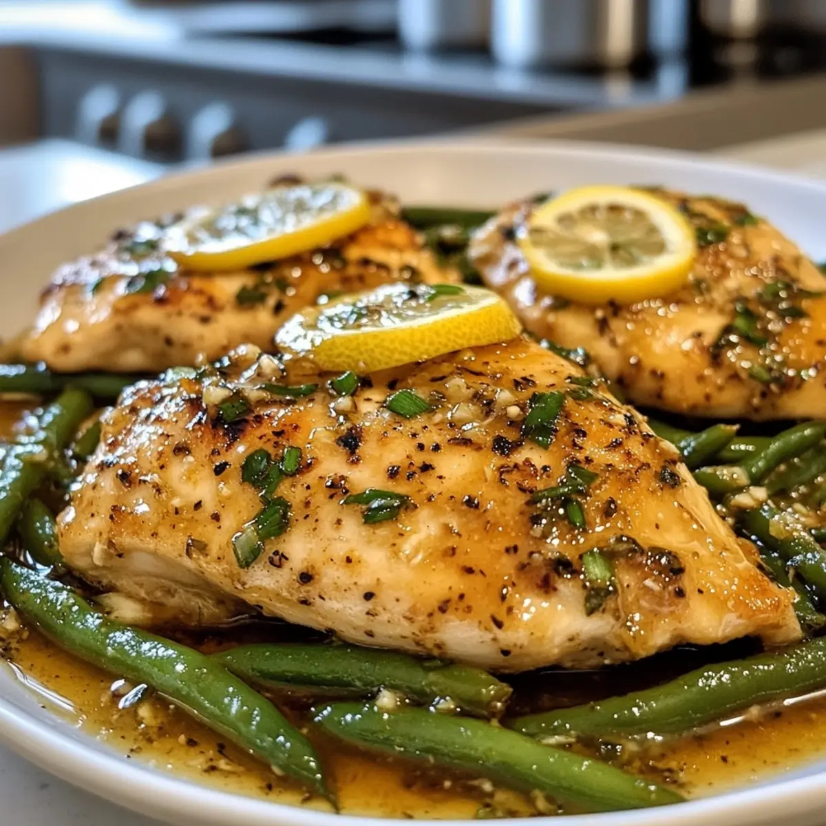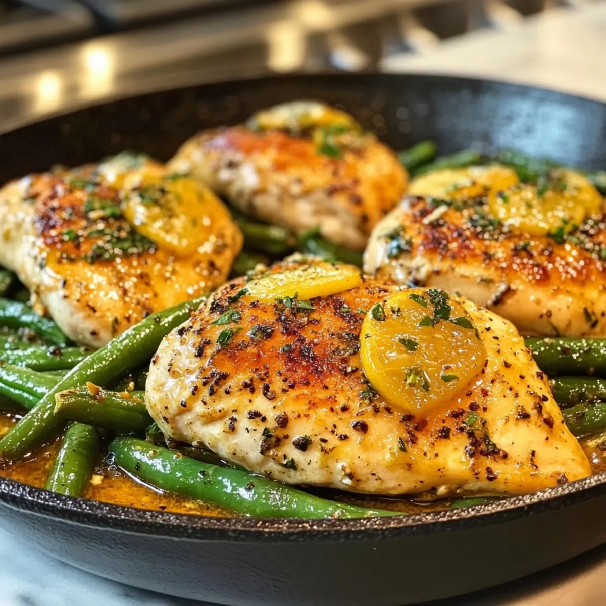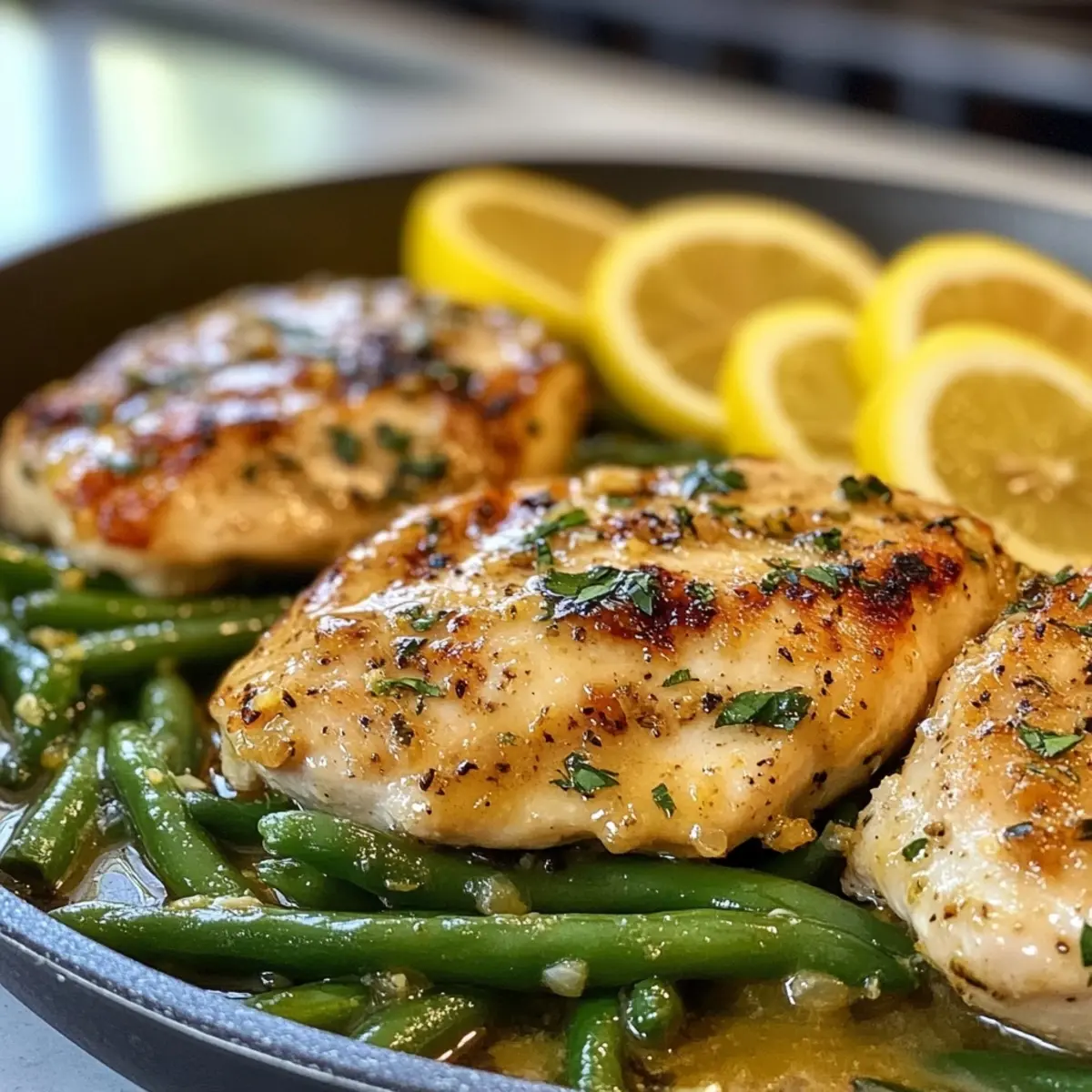 - Combine & Serve: Push the green beans aside in the skillet and return the chicken to the pan to reheat, allowing it to absorb the flavors of the sauce. Adjust the seasoning if necessary, then serve warm, garnished with fresh parsley and lemon slices for a burst of color.
