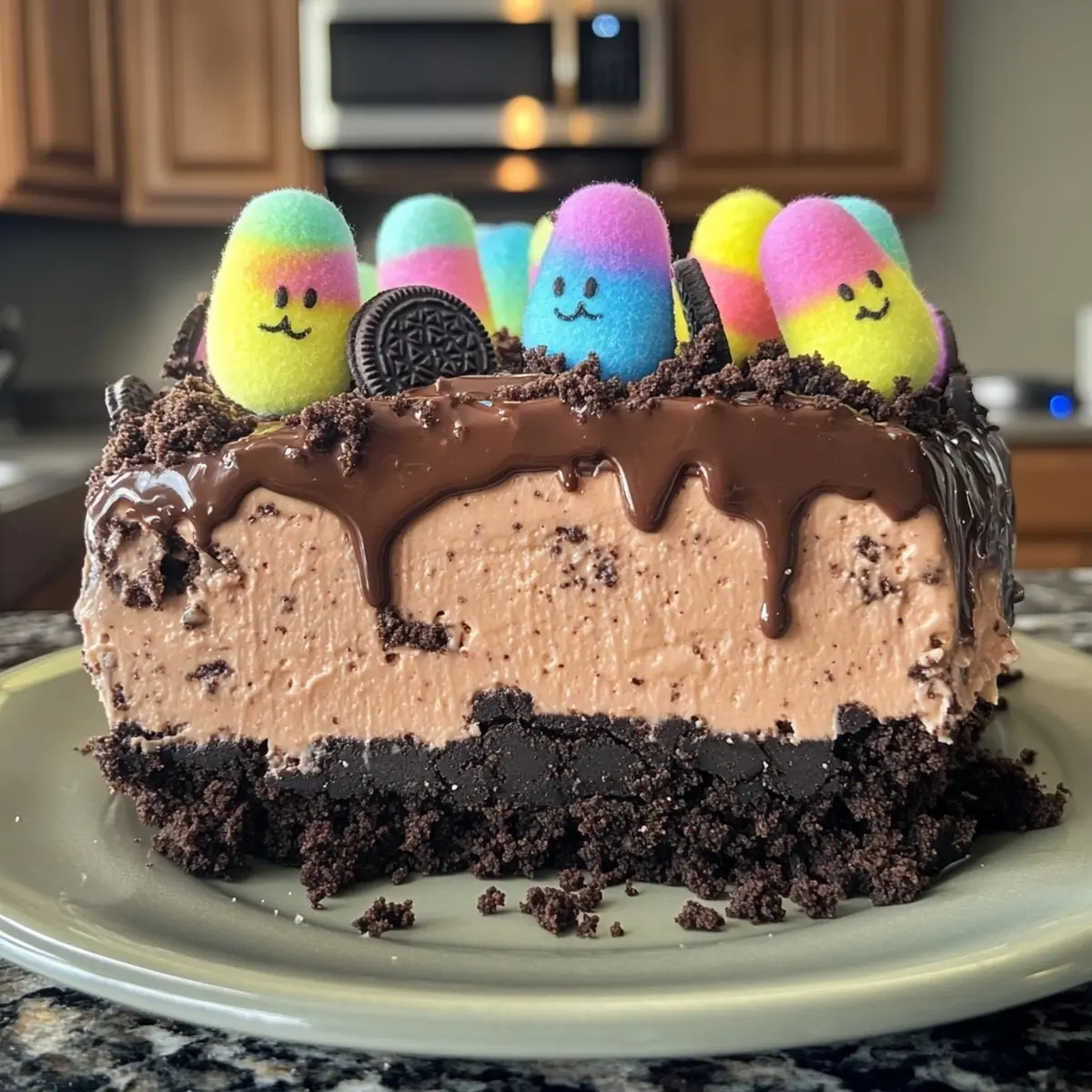 Irresistibly Indulgent Oreo Dirt Chocolate Cheesecake with Peeps