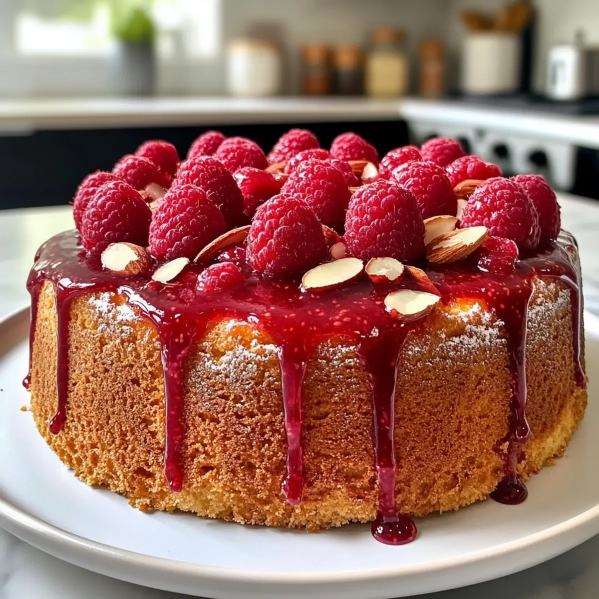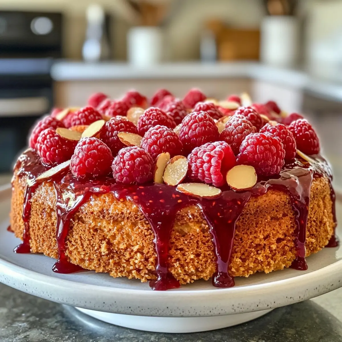 For a beautiful presentation, top your cake with fresh raspberries and slivered almonds. The contrast not only enhances the visual appeal but adds a delightful crunch. You can also dust it with powdered sugar for that extra sweet touch!
