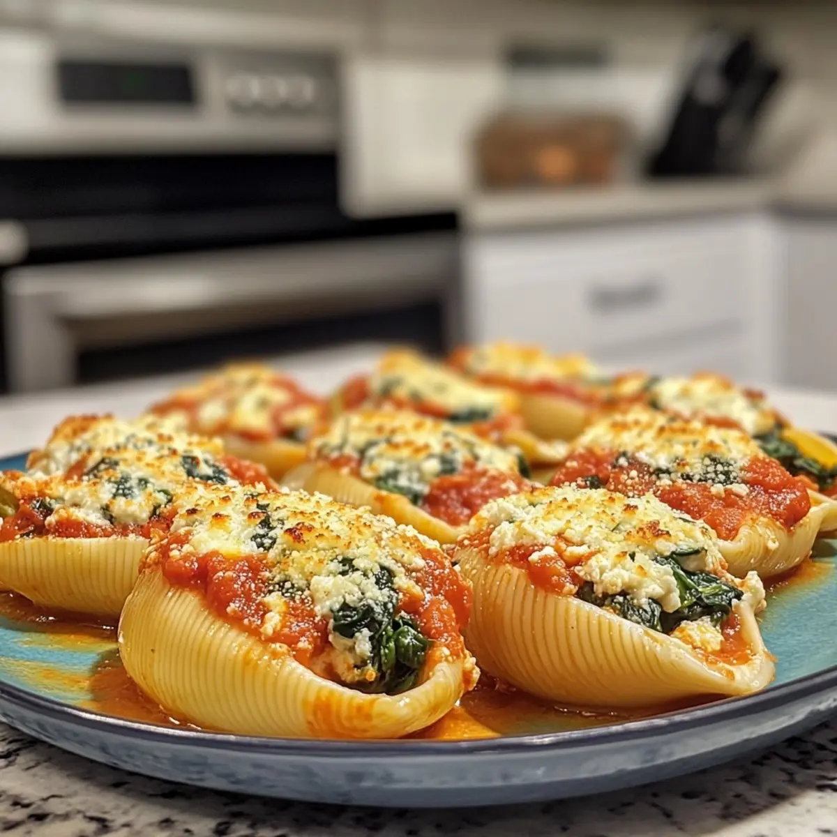 - Assemble the Dish: Preheat your oven to 375°F (190°C). Spread marinara sauce on the bottom of a baking dish. Fill each shell with the spinach-ricotta mixture and place in the dish. Cover with remaining marinara sauce and sprinkle with leftover mozzarella.