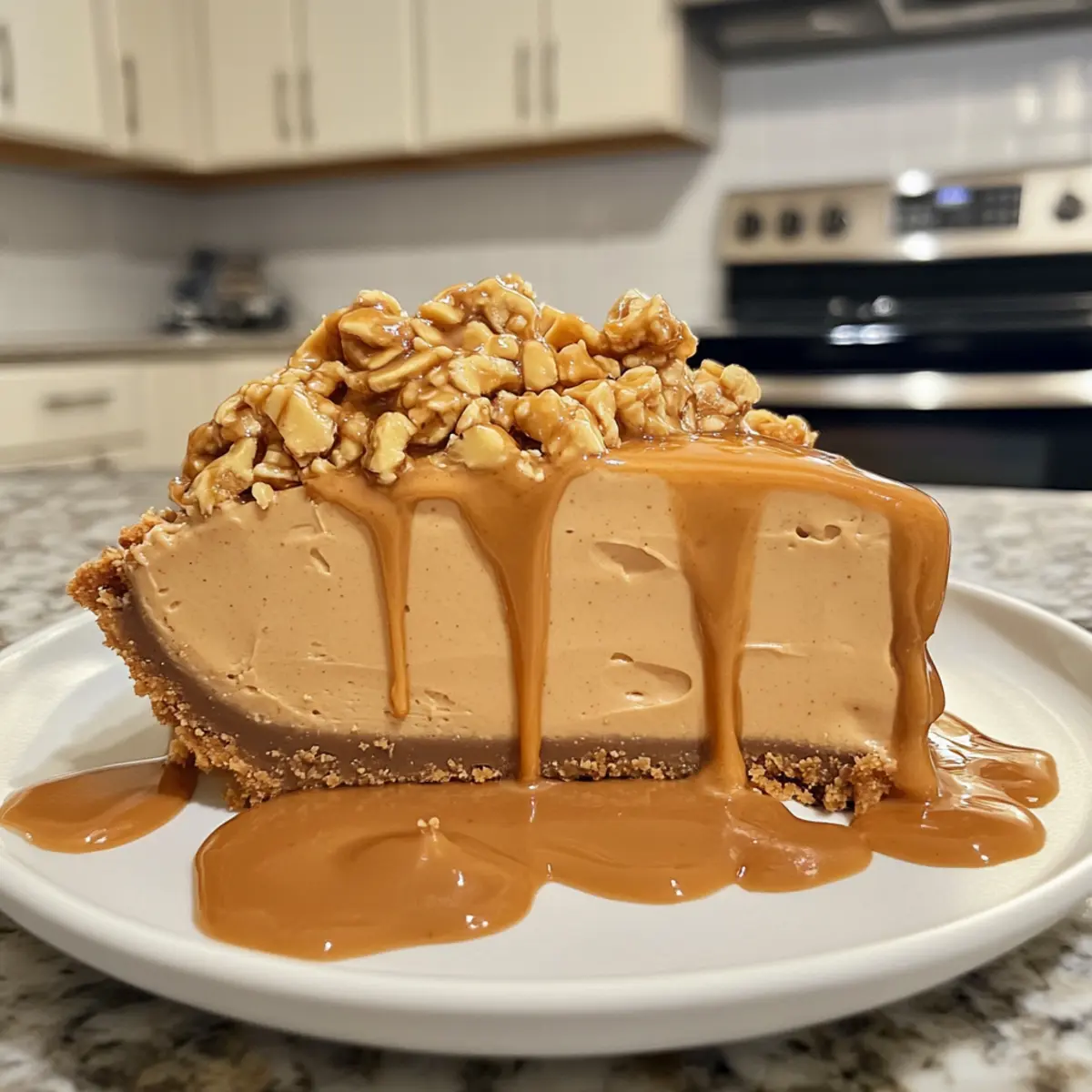 - Assemble the pie by spreading the creamy peanut butter filling into the prepared crust.